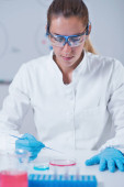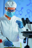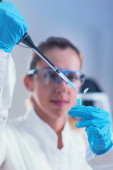 Kobiet naukowców badania próbek w laboratorium