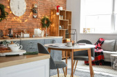 Dekorowane na Nowy Rok lub świątecznej jadalni lub kuchni w domu