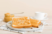 Kanapka z masłem orzechowym. Zdrowe i smaczne śniadanie lub przekąska.