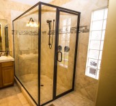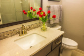 Nowoczesna łazienka z podwójnymi umywalkami, wanną i prysznicem