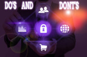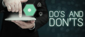 Tekst do pisania słów Do S And Don ts. Koncepcja biznesowa zasad lub ceł dotyczących niektórych działań lub działań System obrazowania sieci komputerowej Nowoczesna technologia inteligentne urządzenie.