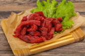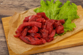 Zdjęcie "Surowe mięso wołowe w plasterkowane do gotowania" może być wykorzystywane do celów osobistych i komercyjnych zgodnie z warunkami zakupionej licencji Royalty-free. Obraz jest dostępny do pobrania w jakości wysokiej rozdzielczości do 5760x3840.