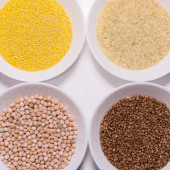 Zdrowe jedzenie wegetariańskie (wegańskie) koncepcja. Różne zboża ekologiczne, rośliny strączkowe, całe ziarna.