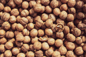 Zdjęcie "Orzechy włoskie na starym drewnianym tle vintage. Deski drewniane. Naturalne drewno. Styl rustykalny. Widok z góry. Miejsce na tekst." może być wykorzystywane do celów osobistych i komercyjnych zgodnie z warunkami zakupionej licencji Royalty-free. Obraz jest dostępny do pobrania w jakości wysokiej rozdzielczości do 5760x3840.