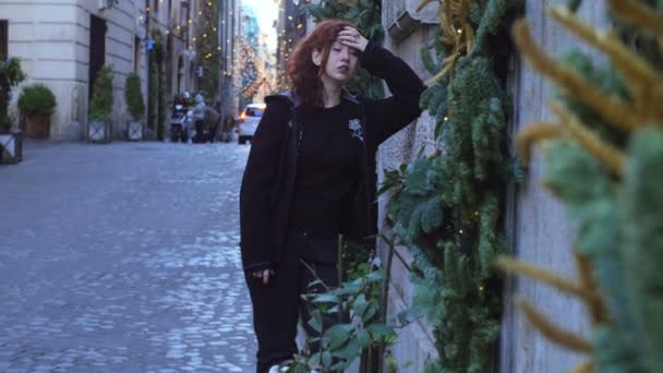 Portret młodej damy spacerującej po parku.