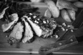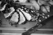 smaczne grillowane kałamarnice z sokiem cytrynowym i świeżych przypraw