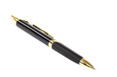 Elegancki drewniany długopis na białym tle.