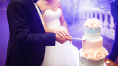 Zdjęcie "Szczęśliwa panna młoda i pan młody kroją swój stylowy tort weselny na bankiecie weselnym. Nowożeńcy trzymający nóż i krojący tort weselny ozdobiony kwiatami. Słodkie ciasto dla pary." może być wykorzystywane do celów osobistych i komercyjnych zgodnie z warunkami zakupionej licencji Royalty-free. Obraz jest dostępny do pobrania w jakości wysokiej rozdzielczości do 5760x3840.