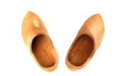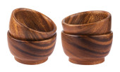 Eleganckie ręcznie robione drewniane kubki na białym tle.
