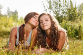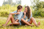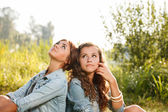 Zdjęcie "dwie dziewczyny siedzi z powrotem do tyłu" może być wykorzystywane do celów osobistych i komercyjnych zgodnie z warunkami zakupionej licencji Royalty-free. Obraz jest dostępny do pobrania w jakości wysokiej rozdzielczości do 5760x3840.