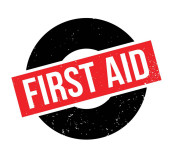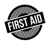 Tekst pierwszej pomocy przy użyciu plastrów medycznych izolowanych na biało z cli