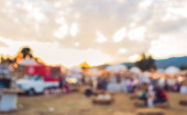 Białe kwiaty na targu rolników z zamazanymi ludźmi
