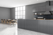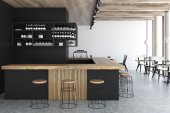 Zdjęcie "Ciemnoszary pub wnętrze z barem i stołami" może być wykorzystywane do celów osobistych i komercyjnych zgodnie z warunkami zakupionej licencji Royalty-free. Obraz jest dostępny do pobrania w jakości wysokiej rozdzielczości do 5760x3840.
