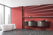 Zdjęcie "Czerwony kącik łazienkowy z wanną i półkami" może być wykorzystywane do celów osobistych i komercyjnych zgodnie z warunkami zakupionej licencji Royalty-free. Obraz jest dostępny do pobrania w jakości wysokiej rozdzielczości do 5760x3840.