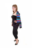 Piękna młoda kobieta leżąca na brzuchu na podłodze
