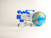 Zdjęcie "zabawka koszyk z małych kolorowych toreb na zakupy w pobliżu globu na białym, e-commerce koncepcji" może być wykorzystywane do celów osobistych i komercyjnych zgodnie z warunkami zakupionej licencji Royalty-free. Obraz jest dostępny do pobrania w jakości wysokiej rozdzielczości do 5760x3840.