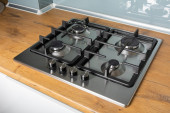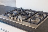 nowoczesny piec gazowy ze stali nierdzewnej z czarnymi elementami