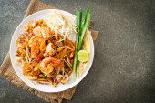 Zdjęcie "Padtajski makaron z krewetkami i warzywami." może być wykorzystywane do celów osobistych i komercyjnych zgodnie z warunkami zakupionej licencji Royalty-free. Obraz jest dostępny do pobrania w jakości wysokiej rozdzielczości do 5760x3840.