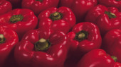 Świeże czerwone, żółte, zielona papryka na czerwonym tle.