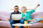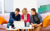 Zdjęcie "Przyjaciele siedzieć na kanapie, rozmowy i za pomocą smartfonu, komputer stacjonarny, laptop. Koncepcja społecznej media." może być wykorzystywane do celów osobistych i komercyjnych zgodnie z warunkami zakupionej licencji Royalty-free. Obraz jest dostępny do pobrania w jakości wysokiej rozdzielczości do 5760x3840.