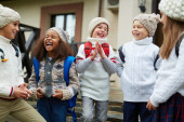 Zdjęcie "Cute uśmiechnięta dziewczyna z dużym pudełkiem prezentów stojących przed kamerą w centrum handlowym podczas sezonowej sprzedaży przed Bożym Narodzeniem" może być wykorzystywane do celów osobistych i komercyjnych zgodnie z warunkami zakupionej licencji Royalty-free. Obraz jest dostępny do pobrania w jakości wysokiej rozdzielczości do 5760x3840.