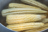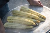 Świeża żółta kukurydza na sprzedaż na rynku rolnym