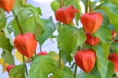 Chińskie Latarnie, Physalis alkekengi.Physalis Alkekengi Franchetii, wiśnia pęcherza moczowego, chińska latarnia, japońsko-latarnia, truskawka lub wiśnia zimowa, jest popularnym roślin ozdobnych w