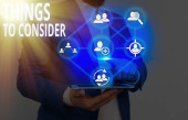 Piszę notatkę pokazującą rzeczy do rozważenia. Prezentacja zdjęć biznesowych Pomyśl o starannie, zwłaszcza w podejmowaniu decyzji Zdjęcie schemat sieci z nowoczesnym inteligentnym urządzeniem.