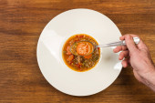Zdjęcie "Pieczone mięso z ziemniakami i warzywami w misce. Ukraińska tradycyjna kuchnia. Widok góry. Wolne miejsce na tekst." może być wykorzystywane do celów osobistych i komercyjnych zgodnie z warunkami zakupionej licencji Royalty-free. Obraz jest dostępny do pobrania w jakości wysokiej rozdzielczości do 5760x3840.