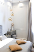 Zdjęcie "Elegancka biało-szara sypialnia" może być wykorzystywane do celów osobistych i komercyjnych zgodnie z warunkami zakupionej licencji Royalty-free. Obraz jest dostępny do pobrania w jakości wysokiej rozdzielczości do 5760x3840.