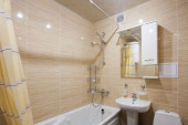 Zdjęcie "Wnętrze małej połączonej łazienki i toalety" może być wykorzystywane do celów osobistych i komercyjnych zgodnie z warunkami zakupionej licencji Royalty-free. Obraz jest dostępny do pobrania w jakości wysokiej rozdzielczości do 5760x3840.