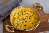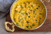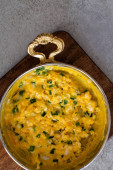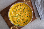 Jajecznica z serem i cebulą. Podawany w gliniarzu.