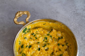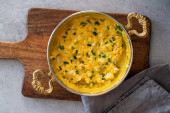 Jajecznica z serem i cebulą. Podawany w gliniarzu.