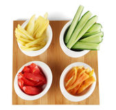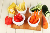 jasne świeże warzywa pokrojone w plastry w miski na drewniany stół szczegół
