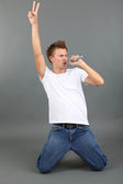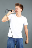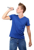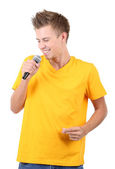 przystojny młody mężczyzna śpiewa na białym tle na biały