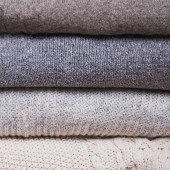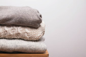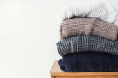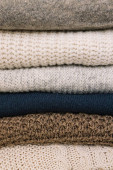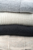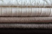 Masa dzianin ciepłych swetrów, różne wzory dzianin złożone w stosy