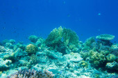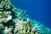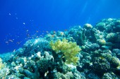 Panorama podwodnego świata. Rafa koralowa światło oceanu pod wodą