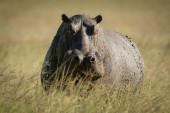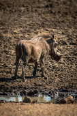 Wspólny guziec stoi przy kamerze do obserwacji basenu
