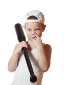 Ładny młody chłopiec w luźnych ubraniach na białym tle studio
