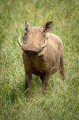 Zwykły guziec twarze aparat fotograficzny w spalonej trawie