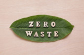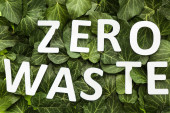 zero waste paper text with green grass on white background. lettering. ecology concept