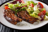 Pyszne grill pikantne krótkie żeberka z frytkami zbliżenie o