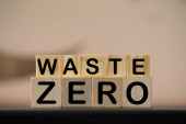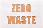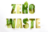 zero waste paper text with green grass on white background. lettering. ecology concept