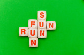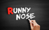 frazę cieknący nos brązowych drewnianych liter leży na niebieskim stole