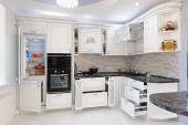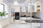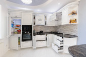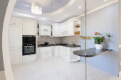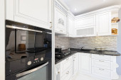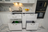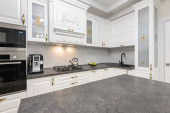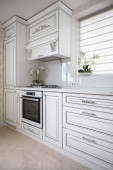 Zdjęcie "Zbliżenie luksusowych mebli kuchennych białych" może być wykorzystywane do celów osobistych i komercyjnych zgodnie z warunkami zakupionej licencji Royalty-free. Obraz jest dostępny do pobrania w jakości wysokiej rozdzielczości do 5760x3840.