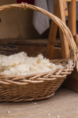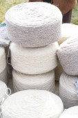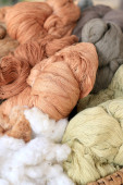 surowej nici bawełnianej i tkaniny bawełnianej na drewnianej tacy