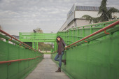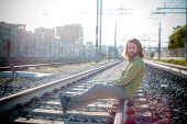 hipster stylowy model z długie czerwone włosy i broda styl życia