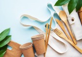 Zdjęcie "ekologiczne naturalne kubki papieru, słomki, drewniane sztućce płaskie leżały na szarym tle. koncepcja zrównoważonego stylu życia. zero odpadów, plastikowe przedmioty. zatrzymać zanieczyszczenie plastiku. Widok z góry, nad głową, szablon, Mockup." może być wykorzystywane do celów osobistych i komercyjnych zgodnie z warunkami zakupionej licencji Royalty-free. Obraz jest dostępny do pobrania w jakości wysokiej rozdzielczości do 5760x3840.