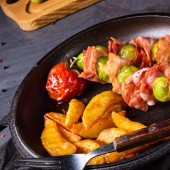 Brukselka - Bekon - szaszłyki z widżetami ziemniaczanymi