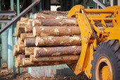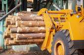 Przemysł drzewny. Ładowarka z kłodami. Przemysł przetwórstwa drewna